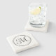 Skapa ditt eget lockiga skript monogram inuti överlappande ringar på en stenkoppunderlägg.