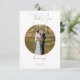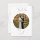 Meddela din speciella dag med den här tidslängden och eleganten Tack för ditt kort. Med ett slående cirkulärt foto ram markeras din favoritbild eller foto före bröllop på ett snyggt sätt mot en vit bakgrund. Den moderna, minimalistiska utformningen förbättras av sofistikerade manus och geometriska sans-serif typsnitt, som skapar en harmonisk blandning av romantik och contemporary stil. Färsk svart text på vitt säkerställer läsbarhet och ger en förfinad tryckning. Detta är en perfekt för par som uppskattar en underskattad elegans och vill göra ett minnesvärt intryck med sitt bröllop-kontor. Oavsett om det gäller ett bröllop, en trädgård eller ett formellt kort, så kompletterar detta ett tema utan problem. M011