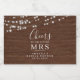 Utformningen har en brun bakgrund av trä kompletterad med ett skuggande grönområde av månljus och ett söt vitt skript-textschackrar. Det här mini-kamper-märket är det bästa sättet att tacka dina gäster för att de duschar bruden!