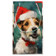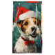 Färgfull och glatt juldesign med en Russel Terrier med en julhatt.