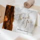 Den här eleganten är bröllop tack vare att du har ett kort med en vattenfärg som går upp gräns i skuggor av bränd orange och rost, som trimmas med faux guld glitter. Anpassadet kombinerar ord "Tack" i handskriftsskript för guld-färgad och namnen på briden och groomen i svart kursiv stil på grått- och vit marmorbakgrund.