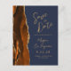 Den här eleganten är modern när du sparar datumet på vykortet och har en bränd orange och en rost vattenfärg i gräns som trimmas med faux guld glitter. Anpassa enkelt det moderna skript och serif-bilder som finns i guld-färgaden mot marinblå bakgrund. På motsatt sida redigerar du returadressen anpassade och anger URL:en till webbplatsen för bröllop för att skapa en QR-kod som gästerna kan söka igenom för att få mer information om den kommande händelsen.