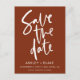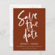 Rust och vitt, modernt skript - enkelt handskrivet calligrafi-vykort för meddelande om Bröllop spara datum