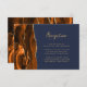 Den lämnat kant i denna elegant har ett modernt mottagningskort för bröllop ett rost eller en bränd vattenfärgad orange agate gräns som trimmas med faux guld glitter. Titeln finns i ett modernt handskriftsskript, med anpassadet nedan i guld-färgad sans serif-teckensnitt på en marin blå bakgrund. Den omvända sidan har en matchande bränd orange och guld agate-design.