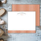 The front stays clean and white with three rust outline hearts beneath a curved personalized name. At the bottom there is a matching white and rust striped band that connects with the vintage stripes on the back. The design feels modern, simple and chic, making it ideal for everyday notes, sweet messages or thoughtful personalized stationery gifts for someone who enjoys elegant and timeless layouts.