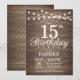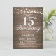 Rustic 15:e födelsedagsinbjudan String Ljus Wood Inbjudningar