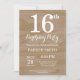 Rustic 16:e födelsedagsinbjudan inbjudningar