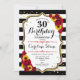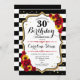 Inbjudan till 30års födelsedag. Utformning av eleganten med solblommor, röd ros, faux glitter guld och svart och vitt rand. Innehåller typsnitt och konfiguration för snyggt av skript. Perfekt för ett elegant födelsedagsfest. Anpassa med din egen information.
