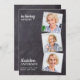 Rustic Chalkboard Unique Memorial Funeral/Firande of Life Call. Dessa sympatisöppningar under begravningen har en unik fotokollage för 3 av dina favoritfoton, mongram namn, ett hjärtligt "In Loving Memory" på ett kalkylbord i en grått- och vit design. Anpassa den här firande i livets begravningsinbjudan med dina kära foton, namn & data, händelseinformation. COPYRIGHT © 2020 Judy Burrows, Black Hund Art - Med alla Höger reserverade. Rustic 3 foton Memorial Firande i livets inbjudan
