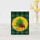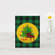 Rustika festsfolderade gratulationskort med Älg och Julgran, anpassat familjenamn och personliga signaturer understrukna med grönt och svart buffelkaromönster.