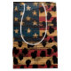 Distressed American flag with bold leopard print overlay on rustic wood texture. Ideal for patriotic women, country style lovers, and those who love bold USA-inspired gift bag.