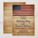 USA Amerikanska Flagga Födelsedagsfest inbjudan. Vänner i inbjudan och familj till din patriotiska födelsedagskalender med dessa amerikanska Flagga i rustiskt trä. Anpassa den här amerikanska flagga-inbjudan med information om evenemanget, namn och party.
