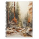 En vattenfärgsåtergivning med 2 rustiska skåp i skogen under hösten.