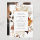 Den här blommigtens bröllopsinbjudan fångar den romantiska fallsäsongens innersta väder med grädda, elfenben, brunt och rost orange. Den fängslande designen blandar på ett perfekt sätt skönheten hos höstblommor och ömtålig löv, som har kommit till liv genom vattenfärgernas artrik och skapar en verkligt mesmarande keepé för din speciella dag. Baksidan av fallbröllopsinbjudan visningar ditt fullt-utfallsfoto, lodräts förlovning. Den här designen koordinerar med vår Rustic Autumn Blommigt bröllop-samling.