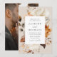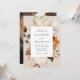 Den här blommigtens bröllopsinbjudan fångar den romantiska fallsäsongens innersta väder med grädda, elfenben, brunt och rost orange. Den fängslande designen blandar på ett perfekt sätt skönheten hos höstblommor och ömtålig löv, som har kommit till liv genom vattenfärgernas artrik och skapar en verkligt mesmarande keepé för din speciella dag. Baksidan av fallbröllopsinbjudan visningar ditt fullt-utfallsfoto, lodräts förlovning. Den här designen koordinerar med vår Rustic Autumn Blommigt bröllop-samling.