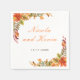 Pretty wedding napkin with autumn fall leaves in orange, yellow and green. Perfect for an autumn fall wedding. The words can be changed to suit your own details or requirements.