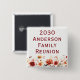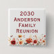 Create a lasting keepsake for your next gathering with this customizable family reunion button. The design features a charming border of watercolor meadow wildflowers in rich autumn tones—including burgundy, burnt orange, golden yellow, and sage green—set against a clean white background.