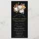 Rustiska höstblommor skapar en elegant gräns för i den här bröllopsprogrammet-mallen. Ljusvita bomullsblommor är inkapslade i djupa guldbruna löv, Evergreen sprigs och akorns tillför en säsong touch. Den vita texten och bilden visas på den svarta bakgrunden. Det finns gott om utrymme för er att ta med de viktiga stunderna i er egen ceremoni i bröllop och hedra era deltagare i bröllop. Det här bröllopsprogrammet ingår i höstinsamlingen av bomull och Löv som innehåller många samordningsposter, t.ex. välkomstskyltar och kort för bordsnummer i bröllop.