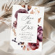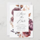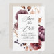 Elegantens falltema sparar datumet med vattenfärgade höstblommor och löv i burgundsnyans, marsala, lila, orange och brunt. "Spara datumet" visas i ett modernt kalligrafiskript med information om namn och bröllop som visas nedan. Fallkoordinaterna sparas med blommigten Rustic Autumn Blommigt bröllop.