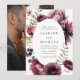 Den här blommigtens bröllopsinbjudan fångar den romantiska fallsäsongens innersta väsen med varma nyanser av marsala, burgundi, lila, brun och rost orange. Den fängslande designen blandar på ett felaktigt sätt kalligrafens skönhet med en ovala ram av höstblommor och ömtålig löv, som har kommit till liv genom vattenfärgernas artiker och skapar en verkligt mesmeriserande keepé för din speciella dag. Anpassa elegantens höstbröllopsinbjudan med uppgifter om namn och bröllop. Baksidan av fallbröllopsinbjudan visningar ditt fullt-utfallsfoto, lodräts förlovning. Den här designen koordinerar med vår Rustic Autumn Blommigt bröllop-samling.