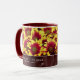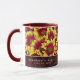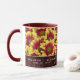 Lägg till en liten vintage charm till din speciella dag med det blommigt temade bröllop mugg, som har en fallande mediley av levande, tvåtoniga mini-solblommor som sätts på ett väderstreck. Anpassa med namn och bröllop-datumet för nylingarna. En underbar keepy för bröllop- och jubileumsfrågor! Design © W.H. Sim, Med reserverade Höger. Se mer på zazzle.com/expressionsoccasions