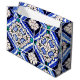 En vacker vintage av Azulejo-plattorna mönster, spanska och portugisiska, mönster i marinblått, vitt och grönt och lätt orange. En vacker smak av Medelhavets perfekt för sommarhemsdekoration. Den perfekterna geometriska mosaicodesignen är en perfekt gåva till alla tillfälle.