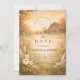 A romantic vintage-inspired design featuring soft wildflowers, golden wheat stems, and glowing lantern accents framing a warm parchment background. Delicate botanical details and earthy neutral tones create a timeless countryside atmosphere with a refined rustic touch. The symmetrical garden framing adds elegance while keeping the overall look soft and inviting. Perfect for an outdoor ceremony, vineyard celebration, or romantic garden setting with classic charm.