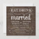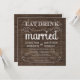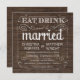 Ät, dryck och vara gift - inbjudningar till det rustiska landsbyggsbröllopet Vintage - Swirly, ruttna scrollsar och typografi från gamla mode på bruna barnträbakgrund. Lägg till namn och bröllop i den här mallen för enkel använda. Elegant, men roligt och vismisk skrivning av stil-skript i krita kan ändras för ditt formella eller halvformella bröllop-tema. Kvadratschackbrädesinbjudan stil är perfekt för trendig av modernt bröllop med en roligt med sofistikerad och romantisk charm för den traditionella bruden och trimmen. Kontakta oss om du behöver mer utrymme för dina uppgifter om bröllop. Kortet för fyrkantsinbjudningar kräver extra-porto - andra storlekar och stilar för krita finns tillgängliga.