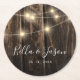 Rustic Barn Wood String Ljus Bröllopsfest Round Papper Underlägg. Utformningen har faux wooden bakgrund med ljus och plats för att lägga till namnen av bruden och trimmen och datumet bröllop . Tillägg av perfekt för en tematisk bröllopsfest i land . De här pappra underläggen för den logiska bröllopsfesten kan anpassas genom att ändra namnen för det nya paret och datumet för bröllop. Kontakta mig gärna på mypaperlove2021@gmail.com om du vill ha ytterligare anpassningar.