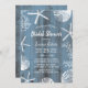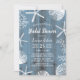 Rustic Starfish & Seashells Beach Dusty Blue Inbjudningskort för möhippa.