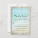 Inkludera dessa OSA kort i ditt Rustic Beach Wood Wedding Suite. En strandscen med akvblått vågar som kraschar mot stranden med vit spray, är inramad med rustiskt vävt trä och sträng ljus dekorerar överkanten.