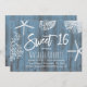 Rustic Beach Sweet 16 Starfish Seashell Dusty Blue Inbjudningar