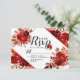 Rustic Beauty Blommigt Framed Watercolor Bohemian Autumn eller Fall Design med Boho Hand Painting Flowers, fjädrar och massor av färgstark orange, rost, rött, Burgundy, Marsala och persikofärgade löv och löv. Med Hand plockade Line inslag, Ro, Typsnitt, Foil, Paint Brush Strokes och Bröllop OSA svarskort för Geometric Diamond Ram! ~ Kolla min butik för att se hela bröllop-svit för den här designen!