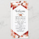 Rustic Beauty Blommigt Framed Watercolor Bohemian Autumn eller Fall Design med Boho Hand Painting Flowers, fjädrar och massor av färgstark orange, rost, rött, Burgundy, Marsala och persikofärgade löv och löv. Med Hand plockade Line inslag, Swirly Hand Lettered Typsnitt och Ro Guld Foil Geometric Hexagon Ram Bröllop Ceremony Programme! ~ Kolla min butik för att se hela bröllop-svit för den här designen!