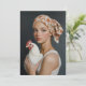 En ung kvinna med slående blå ögon och ömtåliga egenskaper ser mjukt ut medan hon håller en vit kyckling. Hon bär en blommigt huvudduk som är bunden runt hennes huvud och framkallar ett och estetiskt vintage. Bakgrunden till mörken står i kontrast till hennes rättvisa färg och till kycklingens vita fjädrar, som skapar ett tidlöst, klassiskt porträtt med en måltidseffekt.