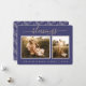 Rustiskt jullokertecken med textvälsignelser i subtle guld glitter och elegant skript på marin blå bakgrund. Baksidan av kortet har en festbär som sprider sig i mönster. Lägg bara till ditt namn och dina favoritfoton från familjen till det här snyggt anpassade julkortet och skicka det till din familj och dina vänner! Enbart designad för dig av Lycklig Dolphin Studio.
