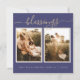 Rustiskt jullokertecken med textvälsignelser i subtle guld glitter och elegant skript på marin blå bakgrund. Baksidan av kortet har en festbär som sprider sig i mönster. Lägg bara till ditt namn och dina favoritfoton från familjen till det här snyggt anpassade julkortet och skicka det till din familj och dina vänner! Enbart designad för dig av Lycklig Dolphin Studio.