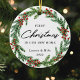 Julgran prydnadsföremål i anpassningsbar-designade med "första jul i vårt nya hem" och med utandningsdesign för röda bär.
