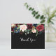 Det här soliga botaniska bröllop-tack du har är perfekt för ett klassiskt bröllop. Utformningen har en grumlig, röd, marin, blå och strålande och roliga, handmålade blommor i svart bakgrund, inspirerande naturskönhet. Anpassa vykortets baksida, inklusive namn, returadress och ett tackmeddelande. Du kan också lämna att meddelandemallsavsnittet är ogiltigt om du vill skapa några ord på varje kort när de har anlänt. De här korten kan användas för bröllop, möhippa eller när du vill tacka.