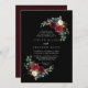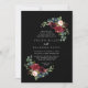 Den här orustiska svarta botaniska diamantbröllopsinbjudan är perfekt för ett klassiskt bröllop. Utformningen har en grumlig, röd, marin, blå och strålande och roliga, handmålade blommor i svart bakgrund, inspirerande naturskönhet.