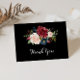 Det här svarta botaniska vikta bröllop-tackkortet är perfekt för ett orustiskt bröllop. Utformningen har en grumlig, röd, marin, blå och strålande och roliga, handmålade blommor i svart bakgrund, inspirerande naturskönhet. Anpassa kortets insida med namn och ett tackmeddelande. Du kan också lämna tackmeddelandeavsnittet tomt och lämna skrivan en personlig på varje kort. De här korten kan användas till en bröllop, en babydusch eller när du vill tacka.