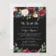 Den här orustiska botaniska inbjudan till förnyelse är perfekt för en klassisk minnesceremoni och firande. Utformningen har en grumlig, röd, marin, blå och strålande och roliga, handmålade blommor i svart bakgrund, inspirerande naturskönhet.