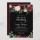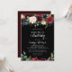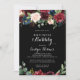 Den här svarta brunken och inbjudningskort för möhippan är perfekt för en klassisk möhippa. Utformningen har en grumlig, röd, marin, blå och strålande och roliga, handmålade blommor i svart bakgrund, inspirerande naturskönhet.