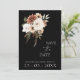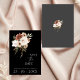 Rustic Black and Peach Blommigt Bröllop OSA Card. Stilt inbjudan dina gäster till bröllopsdagen med det här eleganta designade bröllopet OSA med en vacker blandning av persikor och oliv grönt blommor på en glansig svart bakgrund. Det här bröllopet OSA har en vacker blommigt och botanisk design, med rustiska och boho vibes, perfekt för din blommigt eller gotinspirerade bröllop. Den minimala och moderna layouten uppmärksammar blommigten av lush-persikor, eleganter, som sätts på en slående svart bakgrund. Det här bröllopet OSA anger tonen för ett vackert bröllop-läge omgivet av mörk estetisk bröllop-dekoration och persiko- och krämjblommor. Ett perfekt som tillägg till ett botaniskt eller svart gotskt firande.