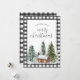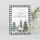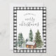 Rustic farmhouse svarta och vita buffalo-helgdagskort var julgranar. Med en liten bergskabin. Utrymme för personlig hälsning.