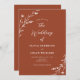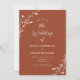 Den här vackra julbröllopsinbjudan har en vacker terracotta-bakgrund med vita, handdragna vilda blommor och elegant-typografi. Det är perfektens utformning för en rustik ännu elegant bröllop! Se samlingen för samordnande artiklar.