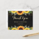 Rustic Black Wood Guld Solros Bröllop Tack Vykort