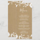 Den här bröllop-menyn har en botanisk vit andedräkt av rustik blommigt mot en papper bakgrund av brunfaux-kraft.