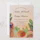 Fantastisk, handmålad, rustik blommigt med ett semiformellt skript. Du kan enkelt redigera mallen till önskat bröllop-namn och information. En vackert formaterad bröllopsinbjudan när som helst på året. Böhmen färg av bränd orange, terracotta, brun, beige och grönt. Den ursprungliga teckningen av blommigten gjordes med bläck med alkohol. Bröllopsinbjudan till Blommigten.