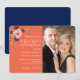 Rustic Blommigt Coral och Navy Blue Bröllop Photo Inbjudningar